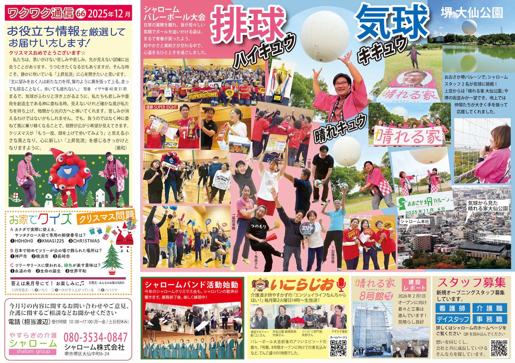 ◆ワクワク通信 2025年12月号 執筆者 kaigo-shalom | 2025-12-02 | メディア シャロームでは『ワクワク通信』を毎月発行しています(^^♪ 地域情報やシャロームグループのワクワク情報が満載~♪ あなたの街のおすすめ情報があれば、是非教えてください! ※画像をクリックすると拡大してご覧いただけます。