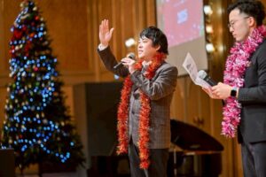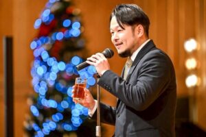 そして、今年のディナータイムは小嶋チャプレンのお祈りと乾杯の音頭ではじまりました。