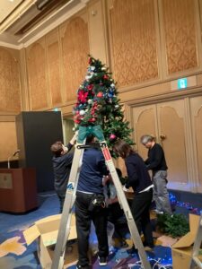 機材の運搬から設営、準備、ツリー設営、運営のお手伝いから最後の後片付けまで、