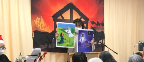 クリスマス長編紙芝居を真鍋ガーデン長が読まれ、