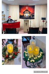 リモコン自動点灯式のキャンドル点火、そして最後にキャンドルの灯りで『きよしこのよる』を賛美しました。