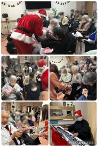 サンタクロースに扮した西木施設長からのご挨拶と、みなさまへのプレゼント。