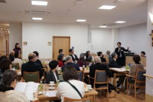 シャロームグループ副会長から今までの歩みと チャプレンリーダ小嶋チャプレンから 具体的なチャプレンのお仕事について説明して下さいました。