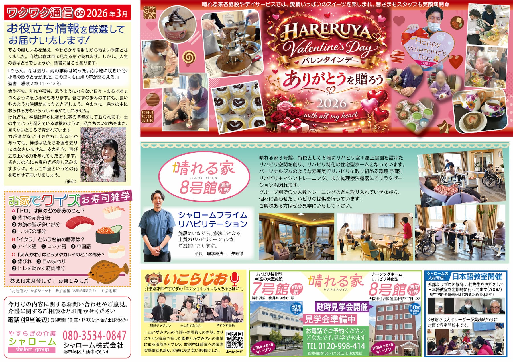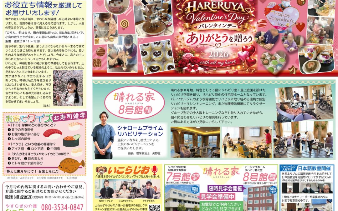 ◆ワクワク通信 2026年3月号 執筆者 kaigo-shalom | 2026-03-05 | メディア シャロームでは『ワクワク通信』を毎月発行しています(^^♪ 地域情報やシャロームグループのワクワク情報が満載~♪ あなたの街のおすすめ情報があれば、是非教えてください! ※画像をクリックすると拡大してご覧いただけます。